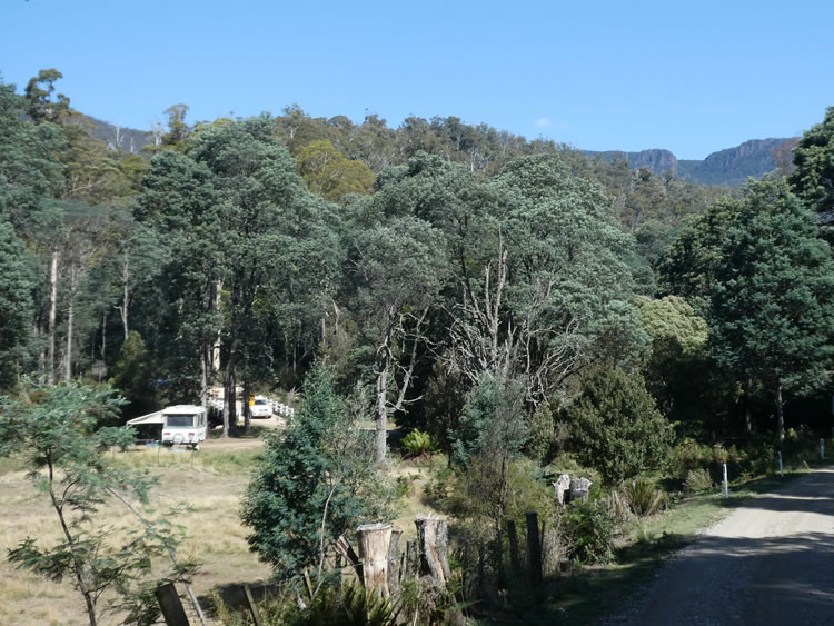 Tasmania Roadtrip - Liffey Falls ReserveDry's Bluff (1200m) is not far from here and is the highest peak of the Great Western Tiers. We saw glimpses of it on the drive back to camp - that's our van near Liffey Creek bridge. We decided to do half hour of the walk along the Liffey Falls track from this end as well. If you are short of time the other end is definitely the best. Previous | Album | Next |