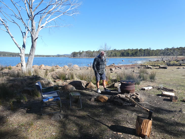 Tasmania Roadtrip - Arthurs LakeThe outflow of Great Lake was originally to the south near Miena but engineers changed that by drilling a 6km tunnel through the northern rim of the Great Western Tiers and placed a power station there at Poatina. This worked better for getting electricity to the major town of Launceston. No electricity for us though, dinner tonight at Arthurs Lake is over the fire! Previous | Album | Next |