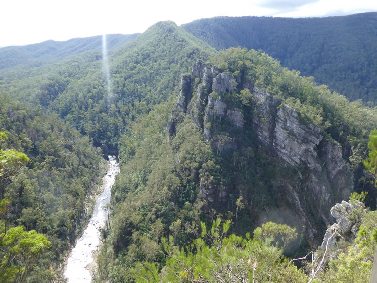 Tasmania Roadtrip - Alum CliffsAfter stopping for coffee at Mole Creek we did the nearby Alum Cliffs walk which is only 50 minute return. This is the amazing view you are rewarded with at the end of the track. That is the Mersey River again. We have been tracking it for a week it seems. Previous | Album | Next |