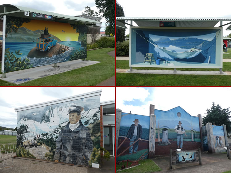Tasmania Roadtrip - Sheffield MuralsClockwise: 'The Voyager' mural struck a chord with us and it was Judges Choice (top left), the other 2010 Joint winner was excellent (top right), 'The Hardest Years' history of the area is on the Sheffield Bible Chapel and 'Mountain Rescue' by Cheyne Purdue 1988 is still good but needs a bit of a touchup. Previous | Album | Next |