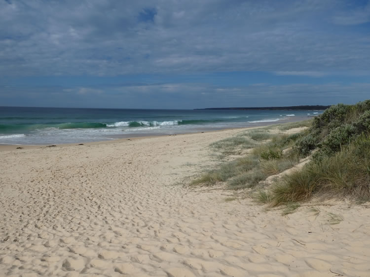 Tasmania Roadtrip - Week 11 - MallacootaFrom Bastions Point we took Nelsons Drive out to Tip Beach near the Golf Course. It is a gorgeous white sandy beach that runs along Mallacoota Coastal Reserve. It seems to be very popular with the local surfers. Unfortunately the facilities at the small car park were damaged by the fires. Previous | Album | Next |
