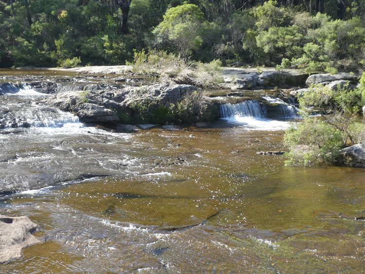 Tasmania Roadtrip - Week 11 - Nellies GlenYou could rock-hop across the Kangaroo River to the Carrington Falls picnic area on the other side if you were younger, fitter and braver than us! We got back in the car and drove right around via the dirt road which was 1 kilometre rather than 100m but much safer. Previous | Album | Next |