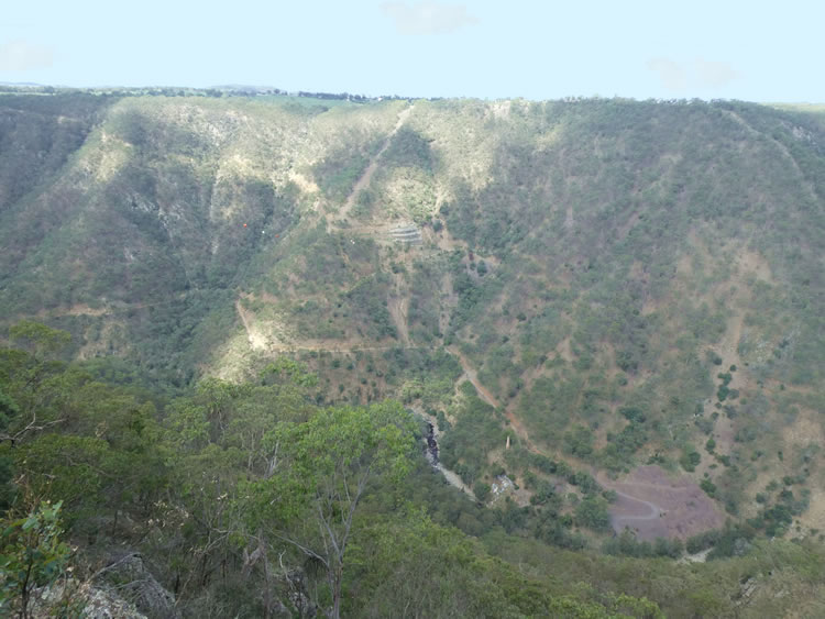 Tasmania Roadtrip - Week 11 - Waterfall WayWe were on the other side of this gorge a short while ago. This is Metz Gorge lookout and in the valley far below is a mine that has been active off and on since 1887. The small town of Hillgrove on the plateau opposite was once a large gold mining town. Previous | Album | Next |
