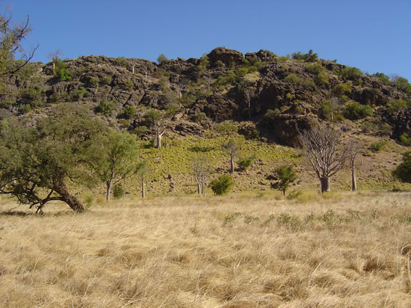 Tunnel Creek, The KimberleysThis is the typical landscape of this area. Spinafex and Boab Trees love the Napier Range limestone. Not much else will grow on it. Time now to go and set up camp up the road at Windjana Gorge National Park. Previous | Album | Next |