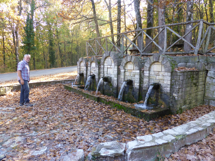 UK and Europe Roadtrip - ArneaWe walked through a carpet of orange and yellow leaves to the five springs that were streaming out fresh water. This area is popular with locals who come here to collect the water or use the picnic tables. Today we have it to ourselves. Select the photo below to see more. Previous | Album | Next |