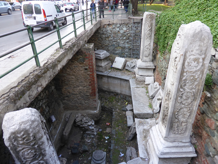 UK and Europe Roadtrip - ThessalonikiGreat Fire of 1917 destroyed two thirds of Thessaloniki which meant they had a chance to rebuild as they wanted, often locating historical ruins as they did. These ruins are being excavated from under and beside the main road. Select the photo below to see the The Church of St Panteleimon and more. Previous | Album | Next |