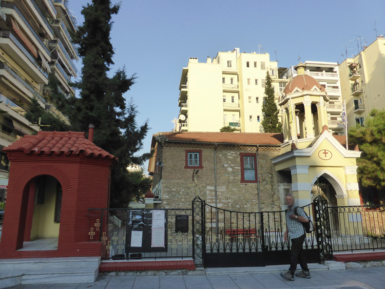 UK and Europe Roadtrip - ThessalonikiWe found a sign in English here! This red religious shrine was once part of a 12th century monastery. It was restored in 1727 and sits beside the Holy Church of the Dormition of the Virgin Mary. Select the photo below to see more from our walk around Thessaloniki. Previous | Album | Next |