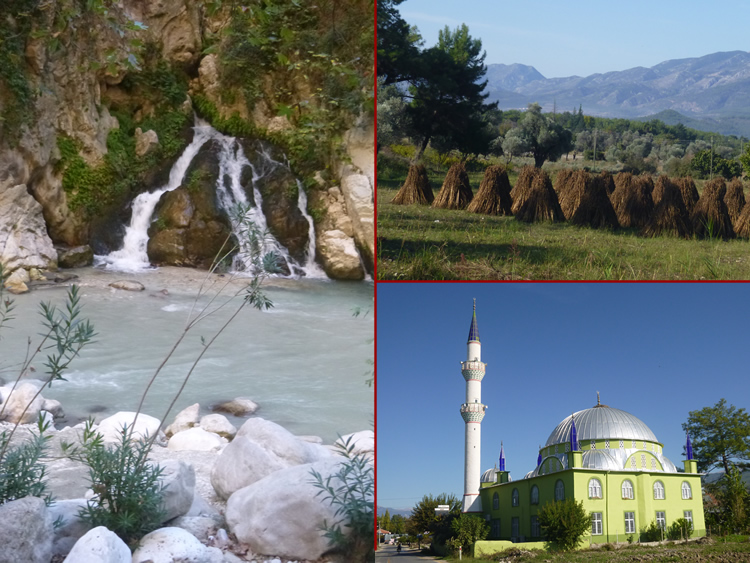UK and Europe Roadtrip - Fethiye DistrictWe headed inland through Mugla Province. These mini haystacks are used to dry the grasses they place on a roof to provide shade. We passed plenty of orchards with pomegranites, oranges, lemons and olives. Select the photo below to see how wide the Saklikent River is further downstream. Previous | Album | Next |