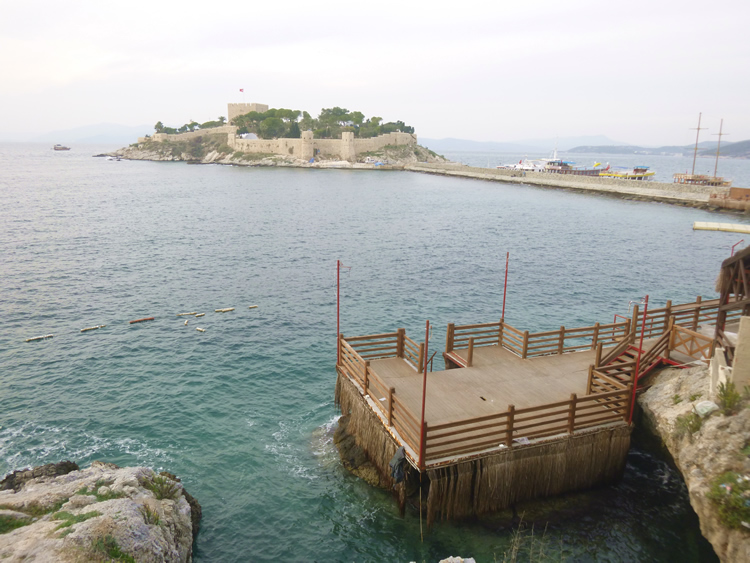 UK and Europe Roadtrip - KusadasiKuşadası is a popular tourist town situated on the Aegean Sea. As we drove around the headland we couldn't miss seeing the Byzantine fortress built on Pigeon Island at the end of the causeway. A structure existed here earlier, but the castle in its present form, was built in the 1500s. Select the photo below to see more. Previous | Album | Next |