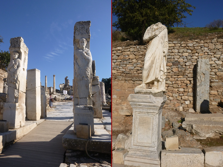 UK and Europe Roadtrip - EphesusThe path through Ephesus that we were following was once the main road called Curetes Street. At one point the road narrowed as we passed through Heracles Gate with his likeness carved into each of the pillars (left of photo). Numerous statues, many headless, are on display along the path. Select the photo below to see more. Previous | Album | Next |
