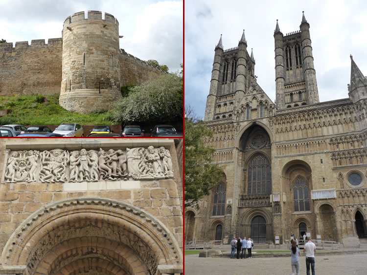UK Roadtrip - Lincoln CastleYou can walk around the top of the medieval castle wall past the Cobb Tower (top left) and have views right across Lincoln and the Cathedral. The western entrance to the Cathedral (right) has a restored Romanesque Frieze originally created in the 1100s (bottom left). Previous | Album | Next |