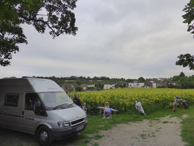 UK and Europe Roadtrip - Upper HallingWe decided to stop the night at nearby Court Farm in Upper Halling. We loved the sunflowers and numerous scarecrows that were right next to the place we pulled up. Select the photo below to see more of our overnight Brit Stop. Previous | Album | Next |