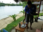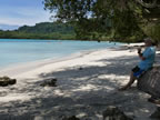 | Week 1 - It is our 2nd time holidaying in Vanuatu and we decided to go to one of the more northerly islands this time - Espiritu Santo Island, usually just referred to as Santo. We flew out from Brisbane at 11am and arrive Vanuatu at 2:45pm (2.5 hour flight). After taking this direct flight from Brisbane to Luganville we caught a taxi to Oyster Island (Malwepe) which was our base for 11 days. It is only a quick 200m ferry across from the main island to Oyster Island. Highlights of the first week were relaxing on Oyster Island with its great food and people; a trip to Blue Holes Pools, Champagne Beach, Lonnoc Beach and Port Olry. We LOVED the Millenium Caves trek (full day) and the Mt Hope Waterfall Cascades tour (half day). Want to choose another album from this area? Use the Pacific Islands Map. |