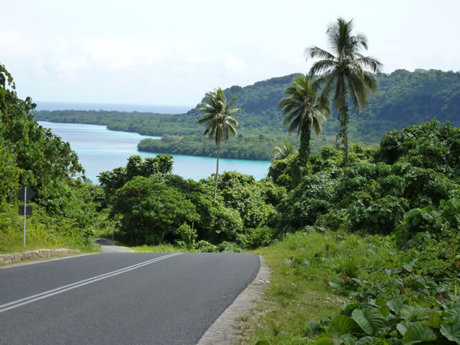 Oyster Island and Espiritu Santo Island, VanuatuWe were headed north to Port Olry which is far as the road goes. After that it is dirt tracks that are not maintained. This road is excellent though and was part of the Millenium Project and built via US donation of funds in the last couple of years. Previous | Album | Next |