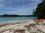 | Week 2 - The first week was action packed with strenuous activities (Millenium Cave & Mt Hope waterfall tours) so this week we wanted to concentrate on relaxing, swimming, reading, walking and kayaking around Oyster Island. We visited the two nearby Blue Holes which were just beautiful, lunched at Turtle Bay Resort and circumnavigated Oyster Island on foot and by kayak. The nearby coral reefs were very accessible by kayak and great for snorkelling. Want to choose another album? Use the Pacific Islands Map. |