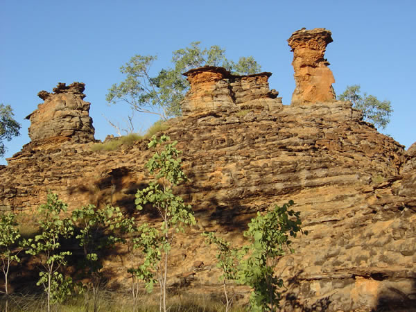 Victoria Hwy to Keep River National ParkThese are the typical rock formations you can see 50m from the campsite. We sat and watched the colour change over the rocks as the sun set - a nice backdrop for our drinks and nibblies. Previous | Album | Next |