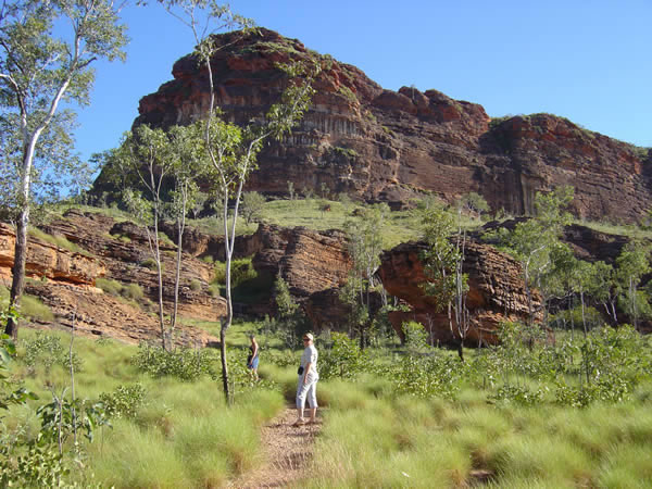 Victoria Hwy to Keep River National ParkWe set off on the campsite walk next morning. It looks like nice green grass doesn't it? But NO, it is spinafex - sharp needle-like leaves designed to scratch your legs if you stray from the track! Previous | Album | Next |