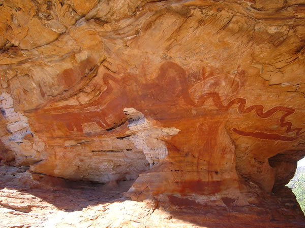 Victoria Hwy to Keep River National ParkThis one had some really good examples of indiginous artwork. Have a look at the artwork up close. Further along this shelter you could see more examples of aboriginal rock paintings. Explanations are provided at the site which helps you to understand the culture of the people that did this artwork many years ago. Previous | Album | Next |