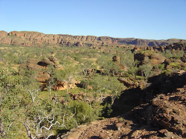 Victoria Hwy to Keep River National ParkThe beehive-type domes can be seen here that are similar (but on a smaller scale) to those seen in the Bungle Bungles now called Purnululu National Park. It is an amazing landscape here at Keep River National Park. Previous | Album | Next |