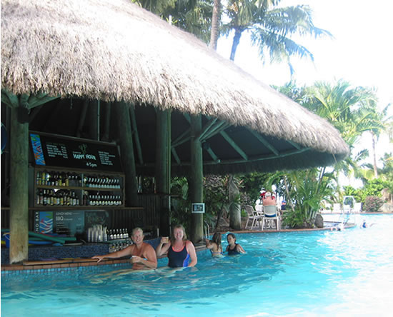 Sailing the Whitsunday Islands - QueenslandWe stayed the night in the Hamilton Island harbour and explored the island in 3 buggies that we hired. That was fun and a great way to get around. We found this great bar in the middle of the pool in the resort. After we restocked on bread & milk we went out for dinner on the island. Previous | Album | Next |