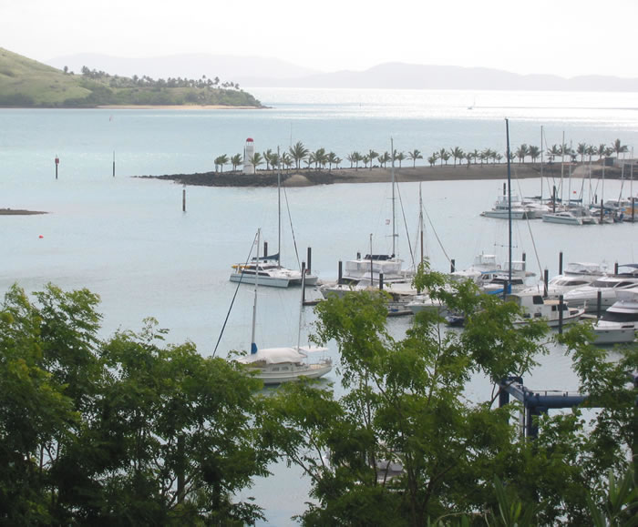 Sailing the Whitsunday Islands - QueenslandMost of our week was overcast and windy but that didn't put a damper on our holiday at all. It meant fast sailing and less sunburn than we would have had otherwise. The only problem was the visibility for snorkelling. That is our catamaran right in the middle of the photo, anchored in the harbour at Hamilton Island. Previous | Home | Next |