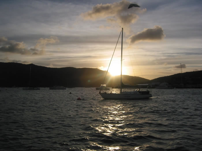 Sailing the Whitsunday Islands - QueenslandOne night we anchored the catamaran in Shute Harbour. You must radio in your position and intended overnight anchorage every morning and afternoon. This ensured they knew where each of their boats was and it helped us too as we could listen to others report in and get tips on where to go and where to avoid. Previous | Album | Next |