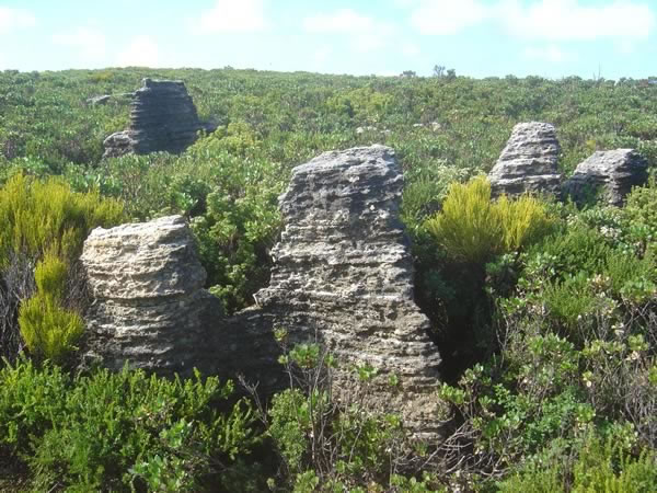 Windy Harbour , D'Entrecasteaux National ParkThis coastal heath wilderness is dotted with weathered rock pillars about 1m high. They reminded us of The Pinnacles we had seen further north. Occasionally you caught a glimpse of the parrots that lived amongst these bushes. Previous | Album | Next |
