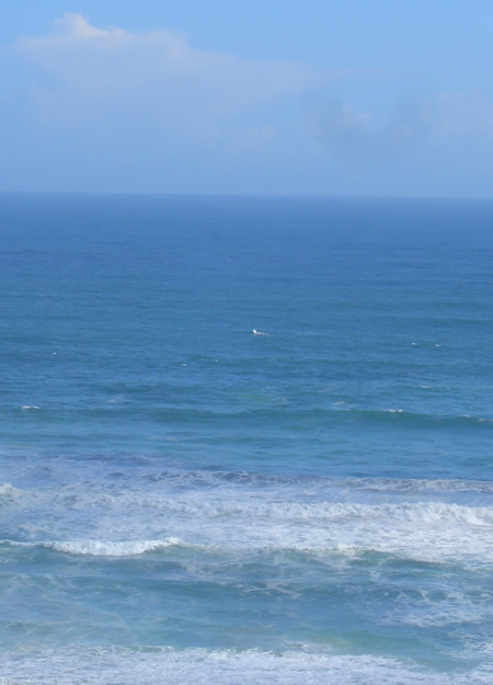 D'Entrecasteaux National ParkWe thought we might get a better view of the whales we saw from Tookalup Lookout from the lookout above Salmon Beach. They were still hard to see amongst the seaspray. Have a look up closer at one of the whales. Previous | Album | Next |