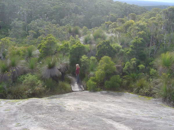 Windy Harbour, Mt ChudalupThe Mt Chudalup walk winds around through the forest behind the granite rock then up the gentlest slope. Some parts of the track are a boardwalk to protect the area. It is quite a steep scramble at the end to get to the top. Previous | Album | Next |