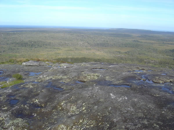 Windy Harbour , D'Entrecasteaux National ParkOnce you were at the top it was quite windy and the rock curved steeply downwards at each edge. Can you see the road below where the first photo of Mt Chudalup was taken? The 360 view was great even though the saltspray meant it wasn't quite as good as it could have been. The climb was well worth it. Previous | Album | Next |